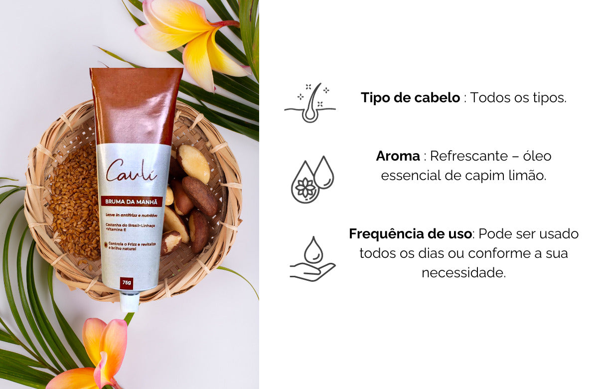 O Bruma da Manhã é um leave-in de textura leve e suave, envolvendo os fios sem sobrecarregá-los. Desenvolvido para dar brilho, alinhar e domar o frizz e a rebeldia de todos os tipos de cabelos.